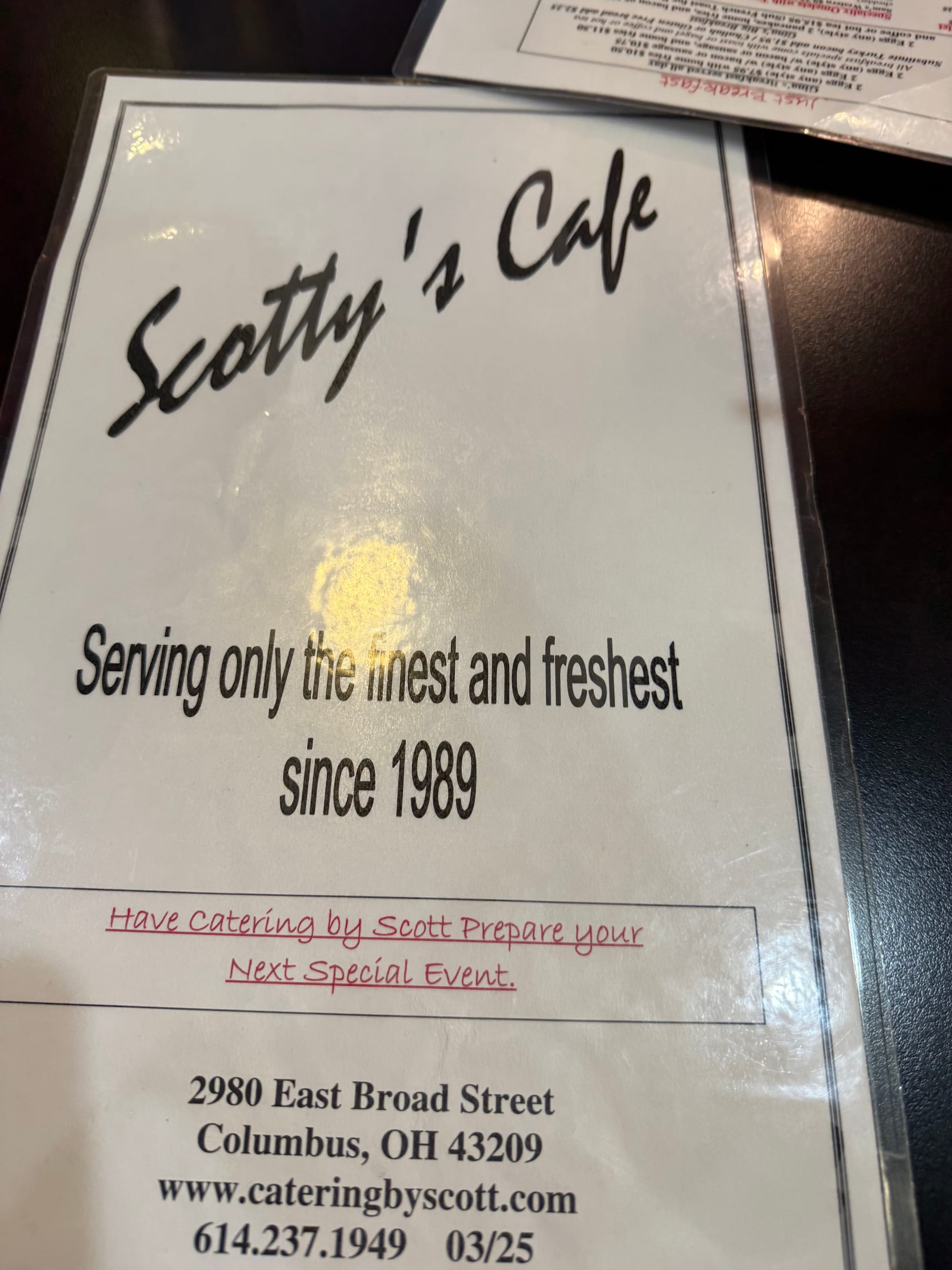 Scotty's is clean and well-staffed with friendly people. I imagine he can keep so much help around because the cafe isn't his core business – Catering by Scott is. He told us Friday that he has catered more than 2,900 weddings. He has also set spreads out for five presidents, two prime ministers and their entourages.