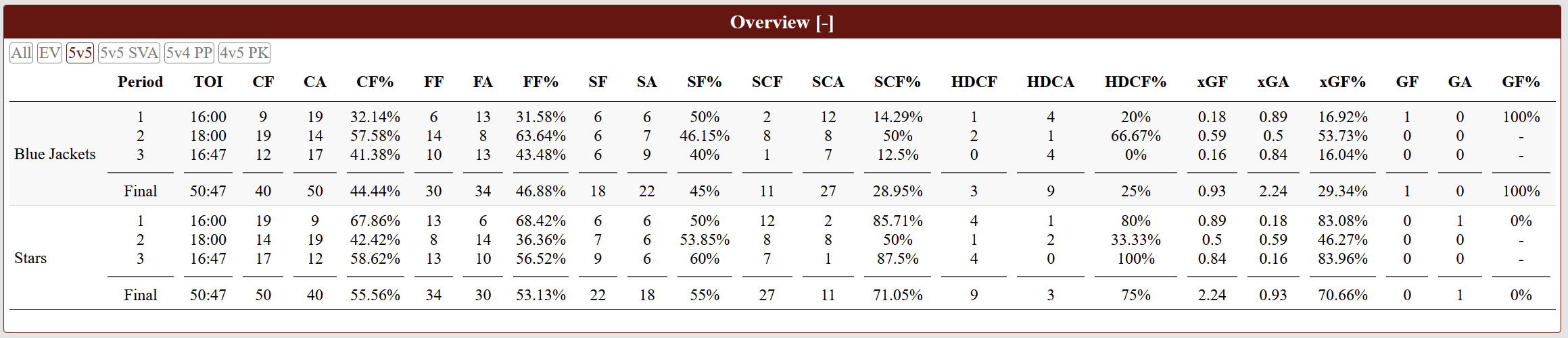 Now, for the analytics breakdown of the Jackets-Stars game from Natural Stat Trick.