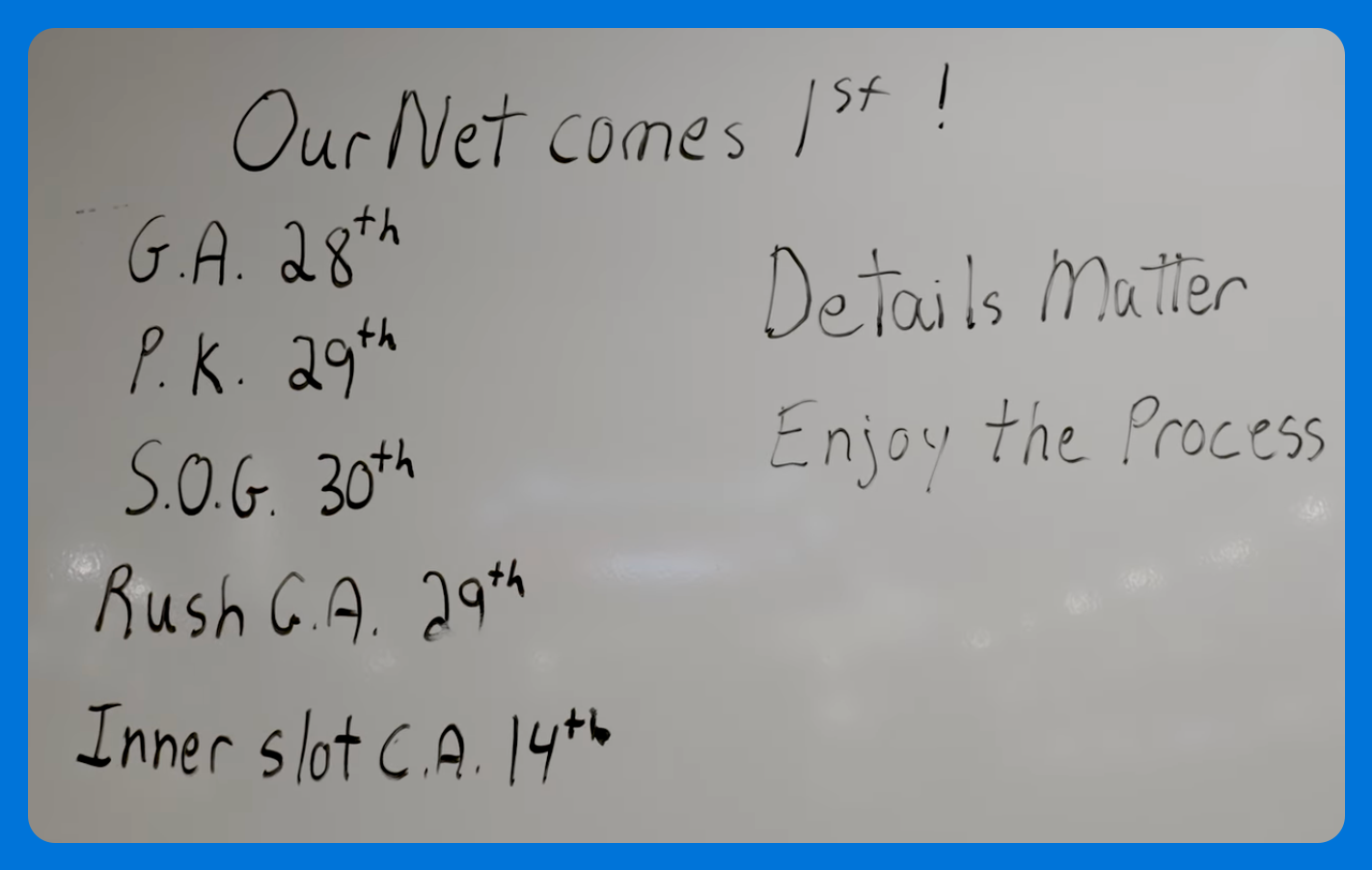 When Bowness made his Jackets debut behind the bench last week, this is what he had on the whiteboard before the game: