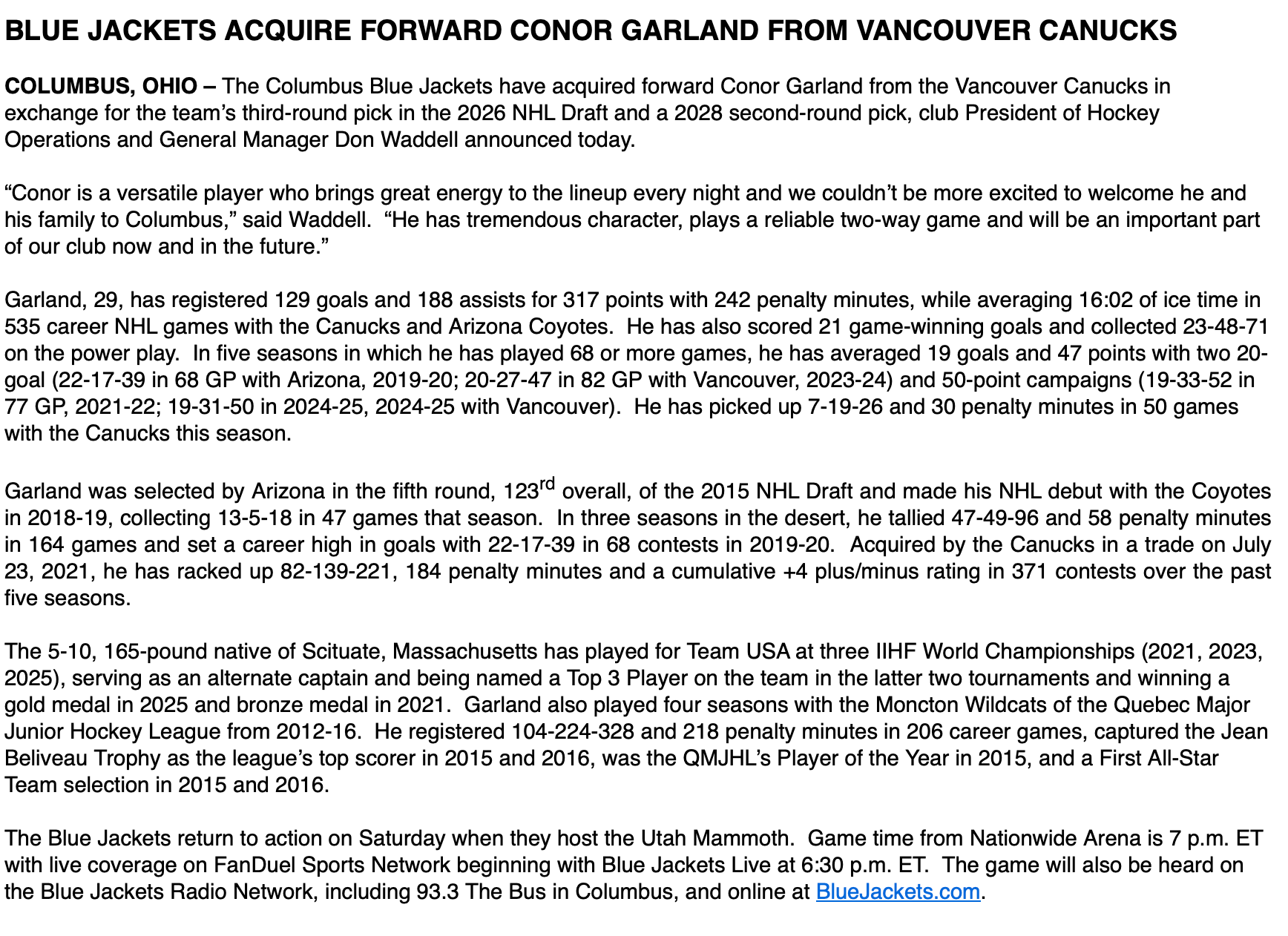 Waddell wanted to add a top-six forward. Check. (With the proviso that Garland is best suited for middle-six duty)