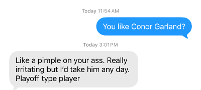 I put out a question to a few people in the league I know well and respect fulsomely. The text exchanges went like this: